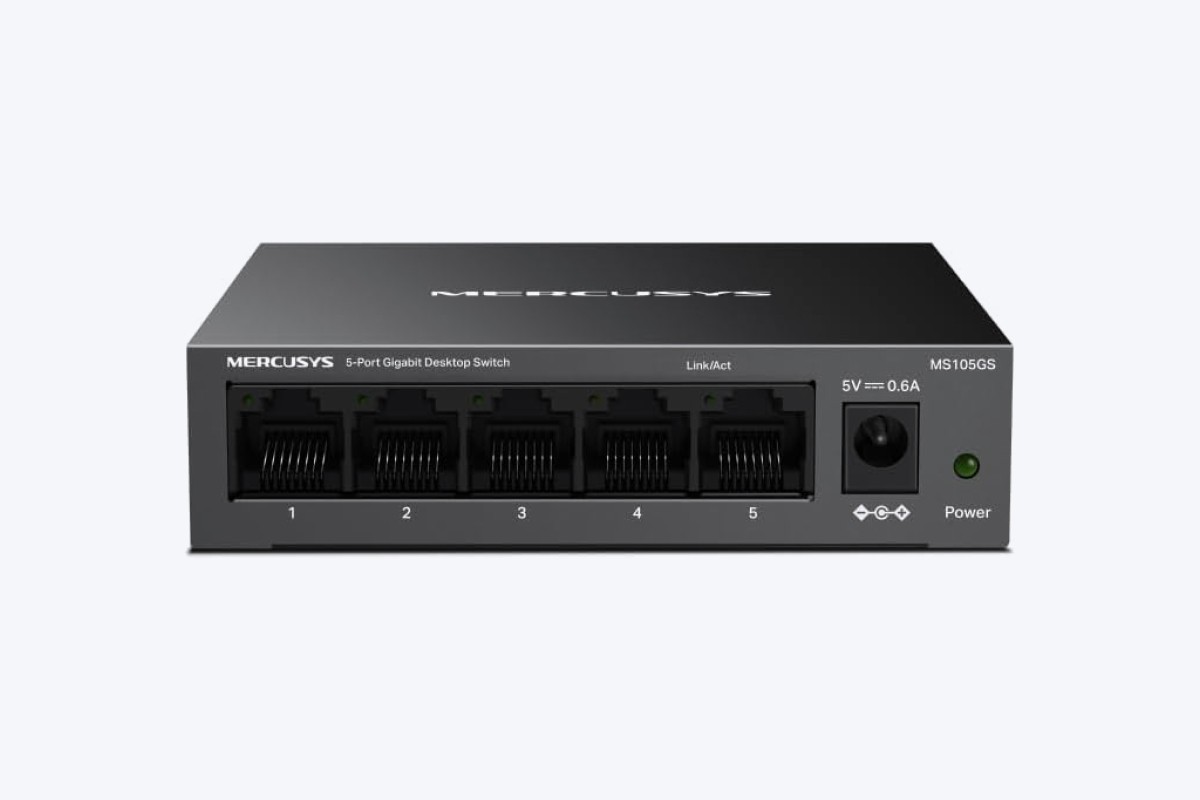 MS105GS è uno Switch Gigabit che consente di espandere la rete con nuove porte LAN, collegando in modo stabile dispositivi cablati come PC Desktop, Smart TV, stampanti, telefoni IP, ecc.