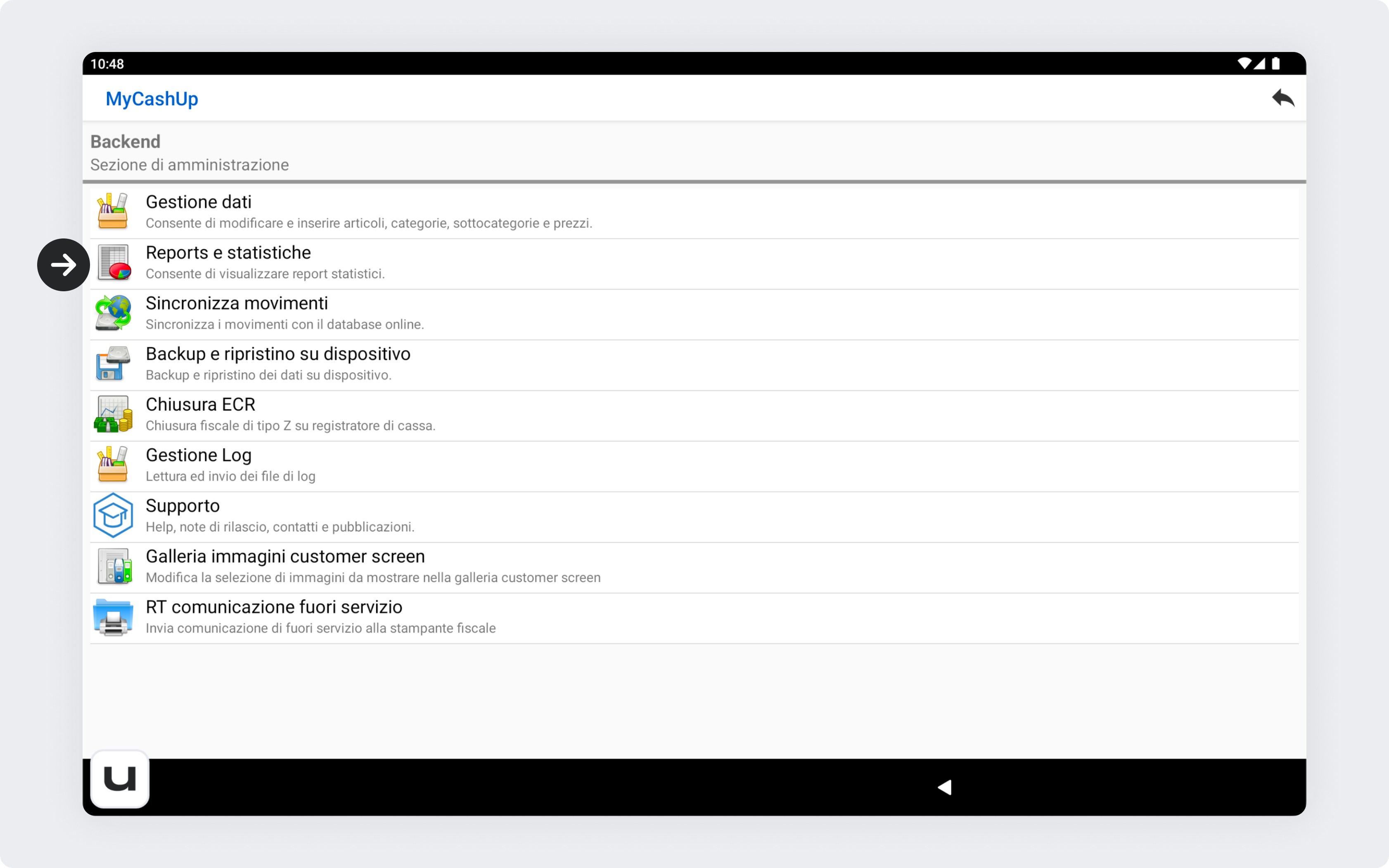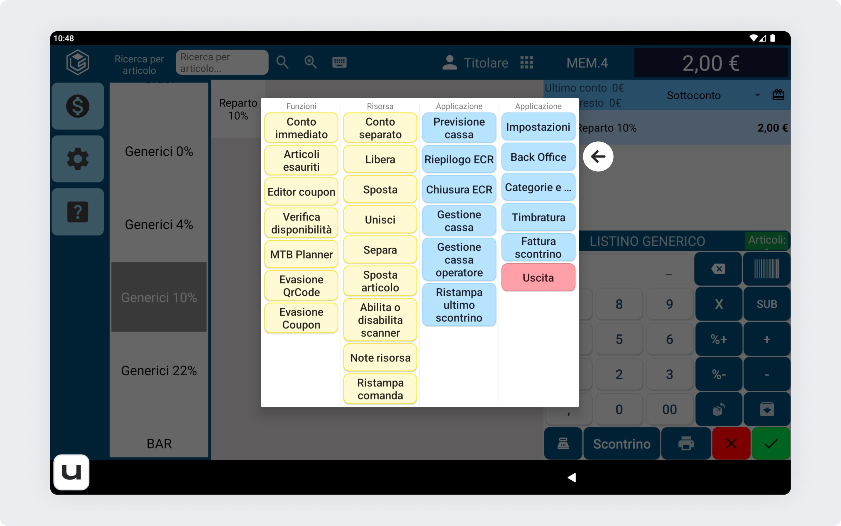 Dalla schermata principale della cassa, clicca sulla rotellina delle impostazioni sulla sinistra.