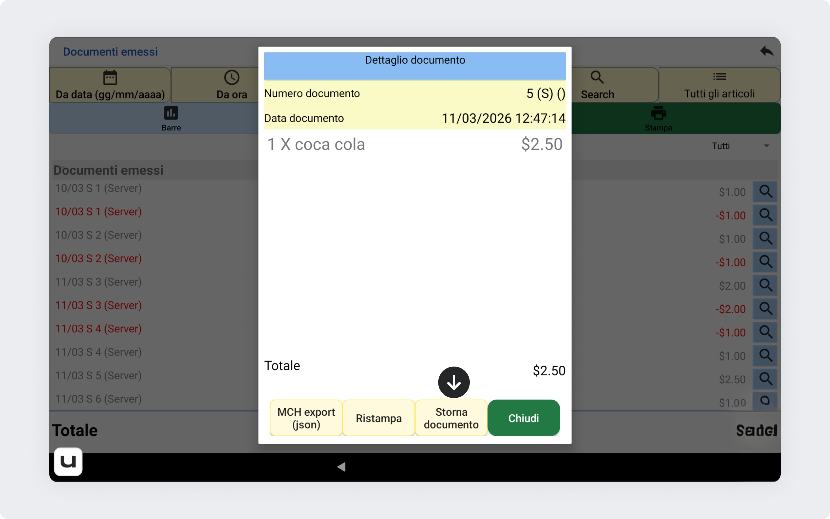 Nell’elenco dei documenti emessi individua lo scontrino che desideri annullare.