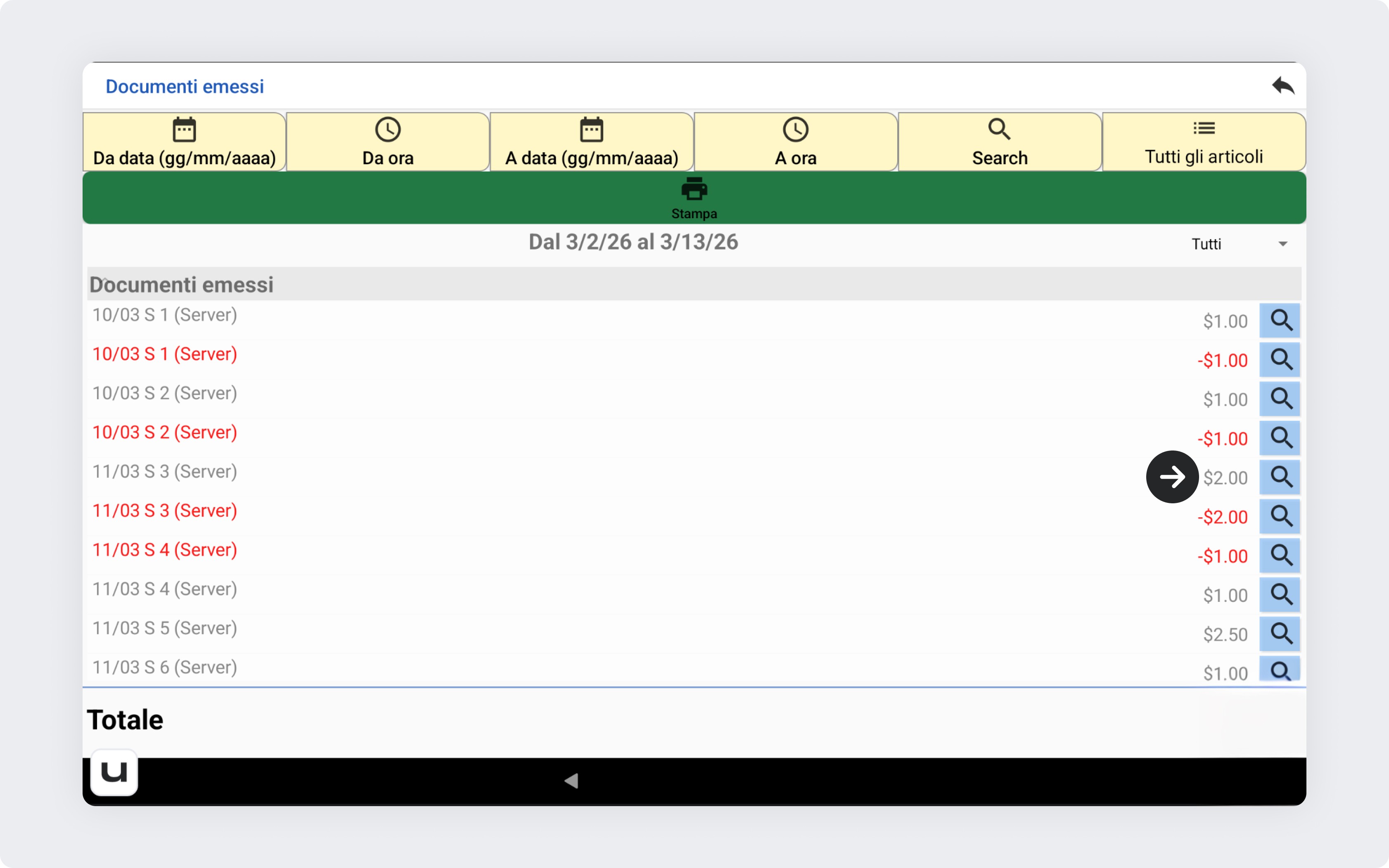 Clicca sull’icona della lente di ingrandimento accanto allo scontrino per visualizzarne i dettagli.