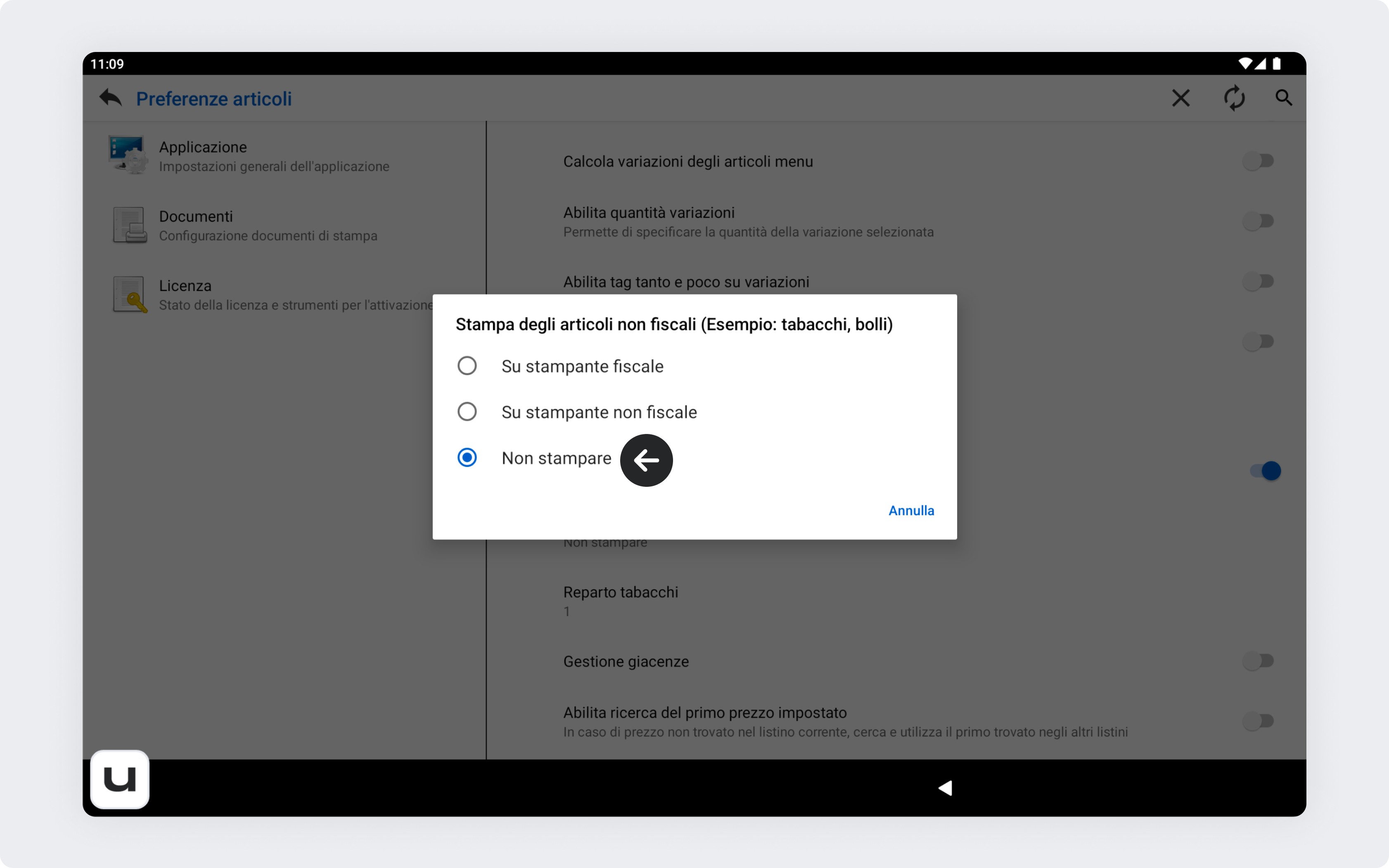 Scorri l’elenco fino a trovare la voce Stampa degli articoli non fiscali.