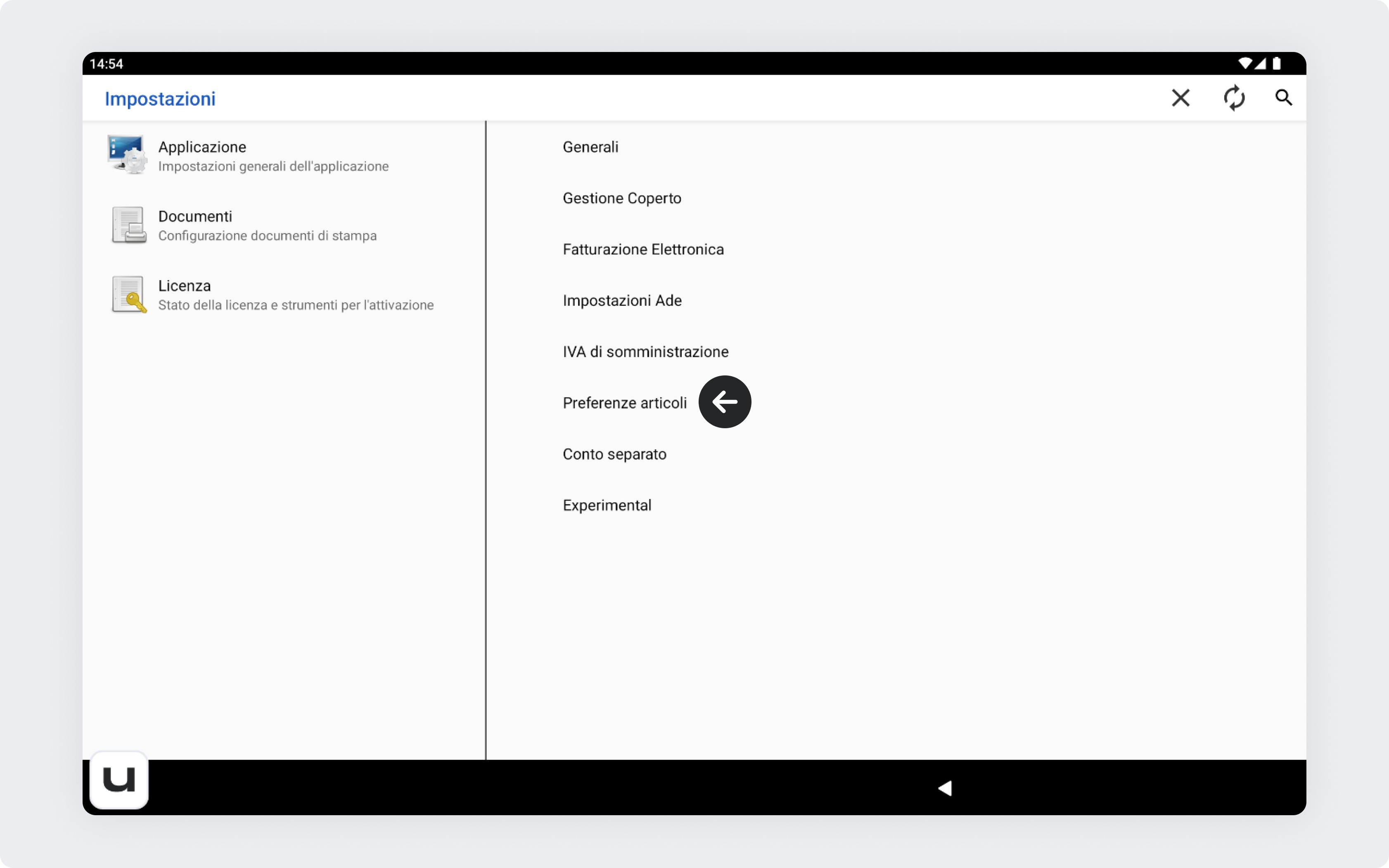 2. Trova la voce preferenze articoli