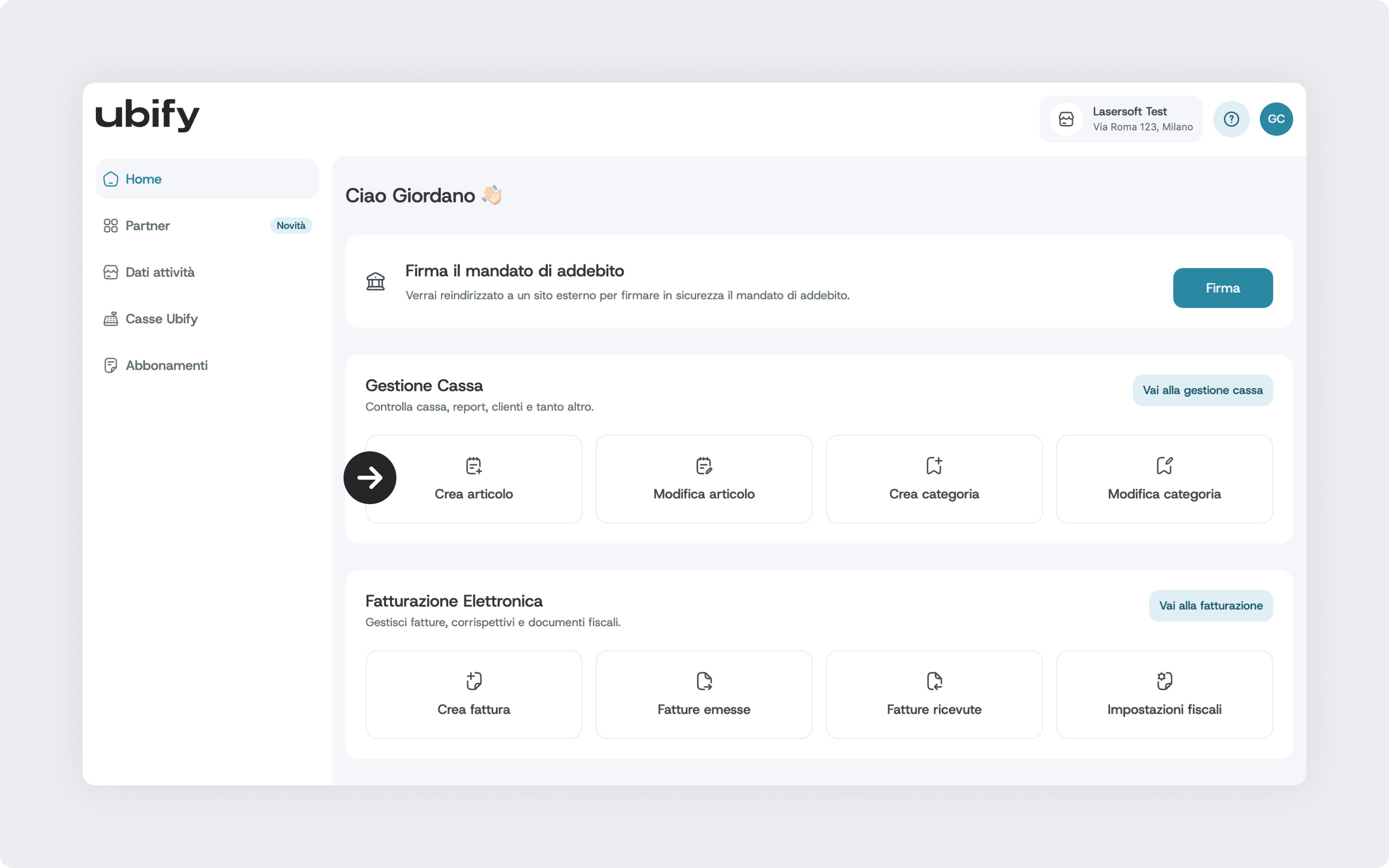 Dal portale Ubify, nella schermata principale, vai su Gestione cassa.
