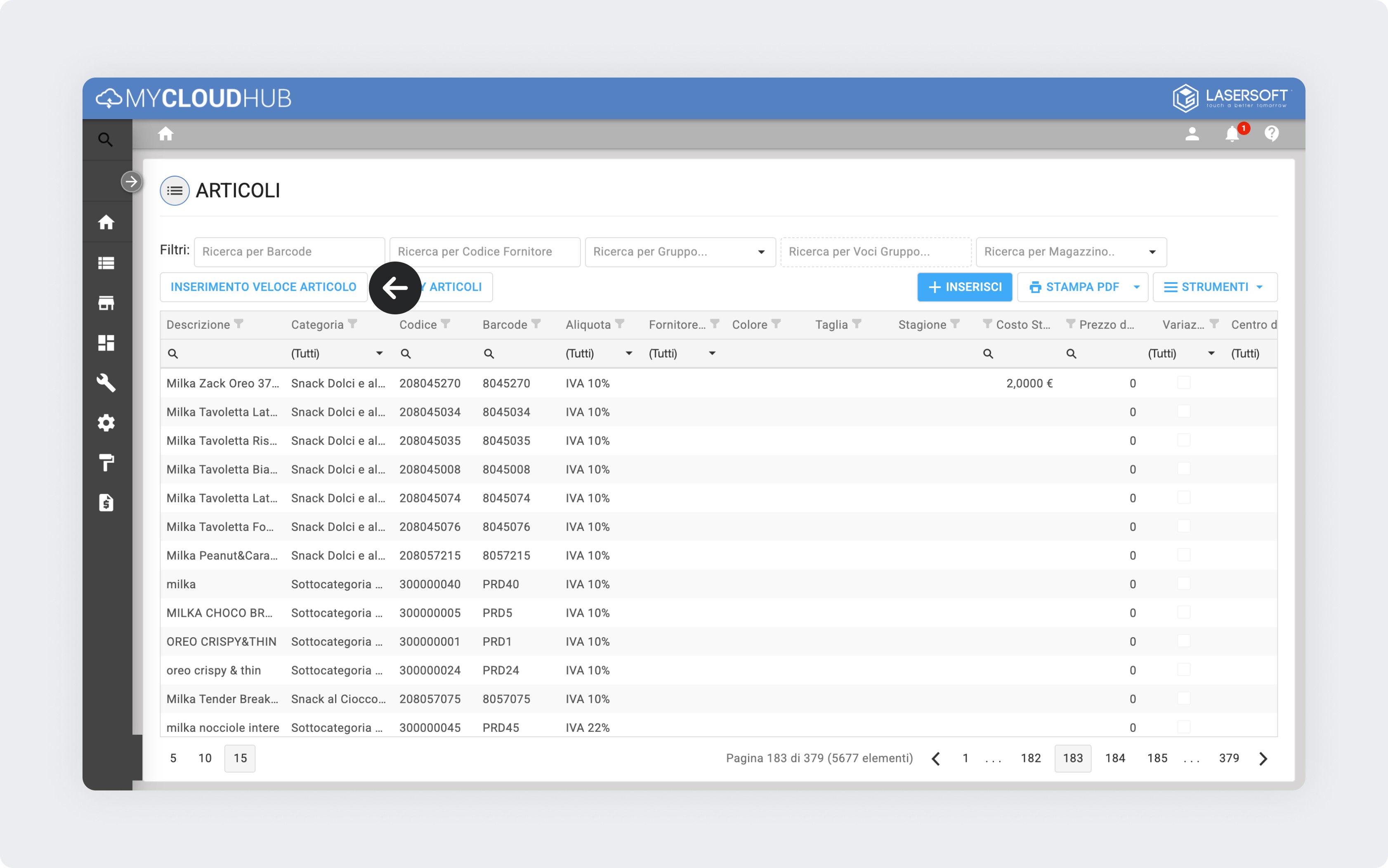 Codice: codice identificativo univoco dell’articolo, utile per la ricerca rapida.