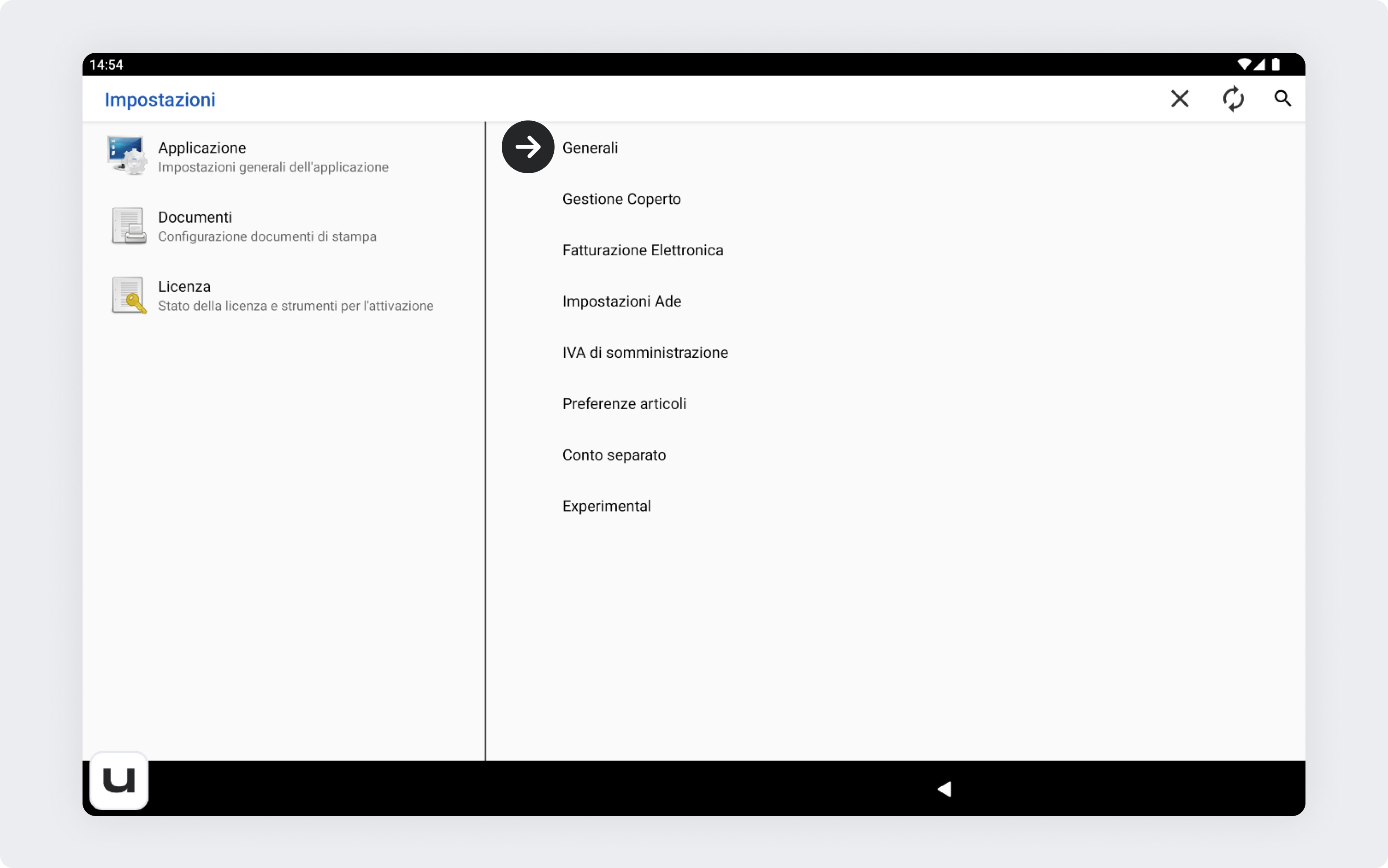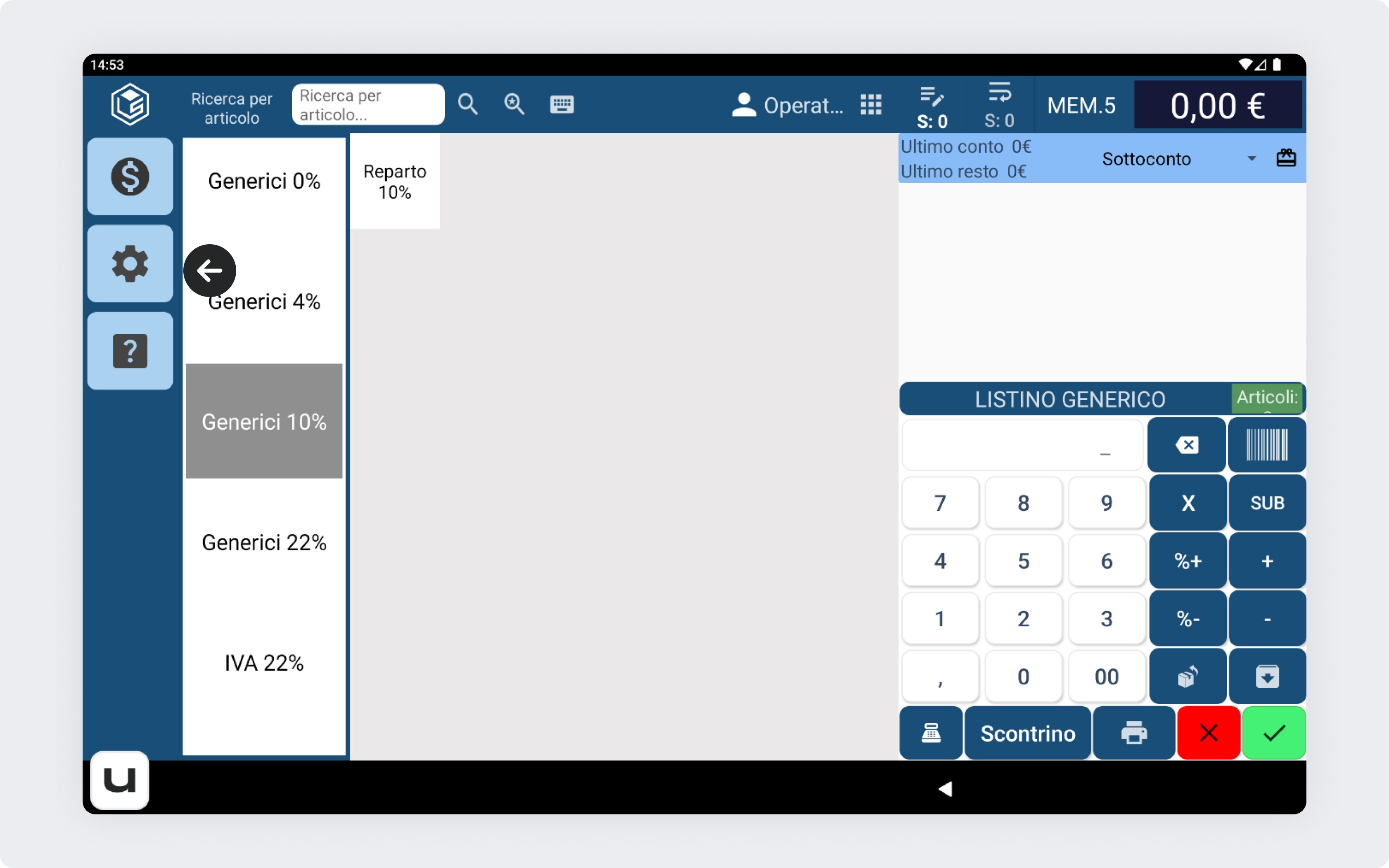 Dalla schermata principale della cassa, clicca sulla rotellina delle impostazioni sulla sinistra.