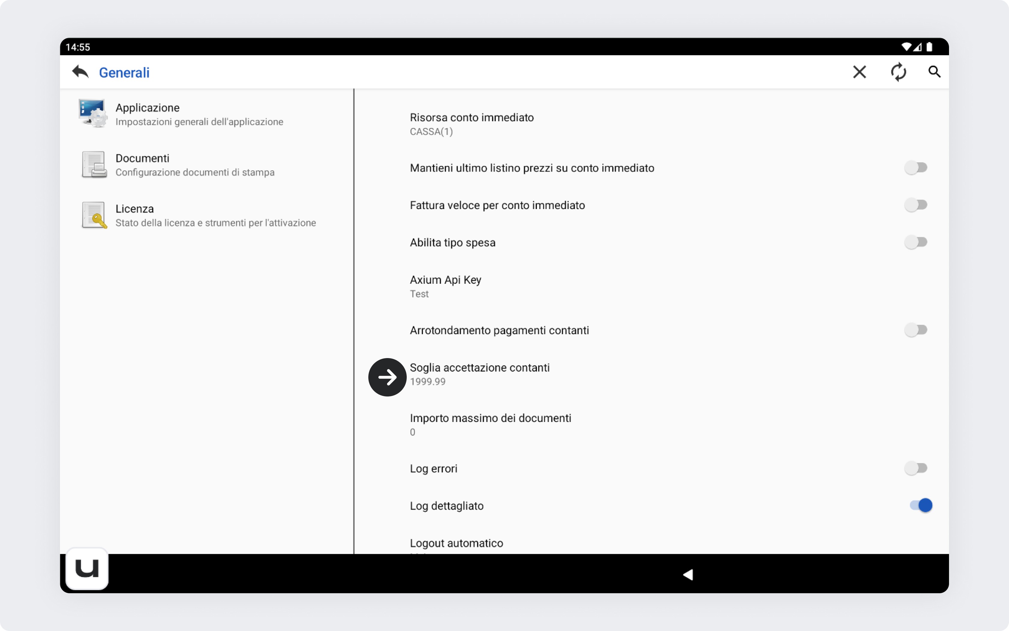 Scorri verso il basso fino a individuare la voce Soglia di accettazione contanti e cliccaci sopra.
