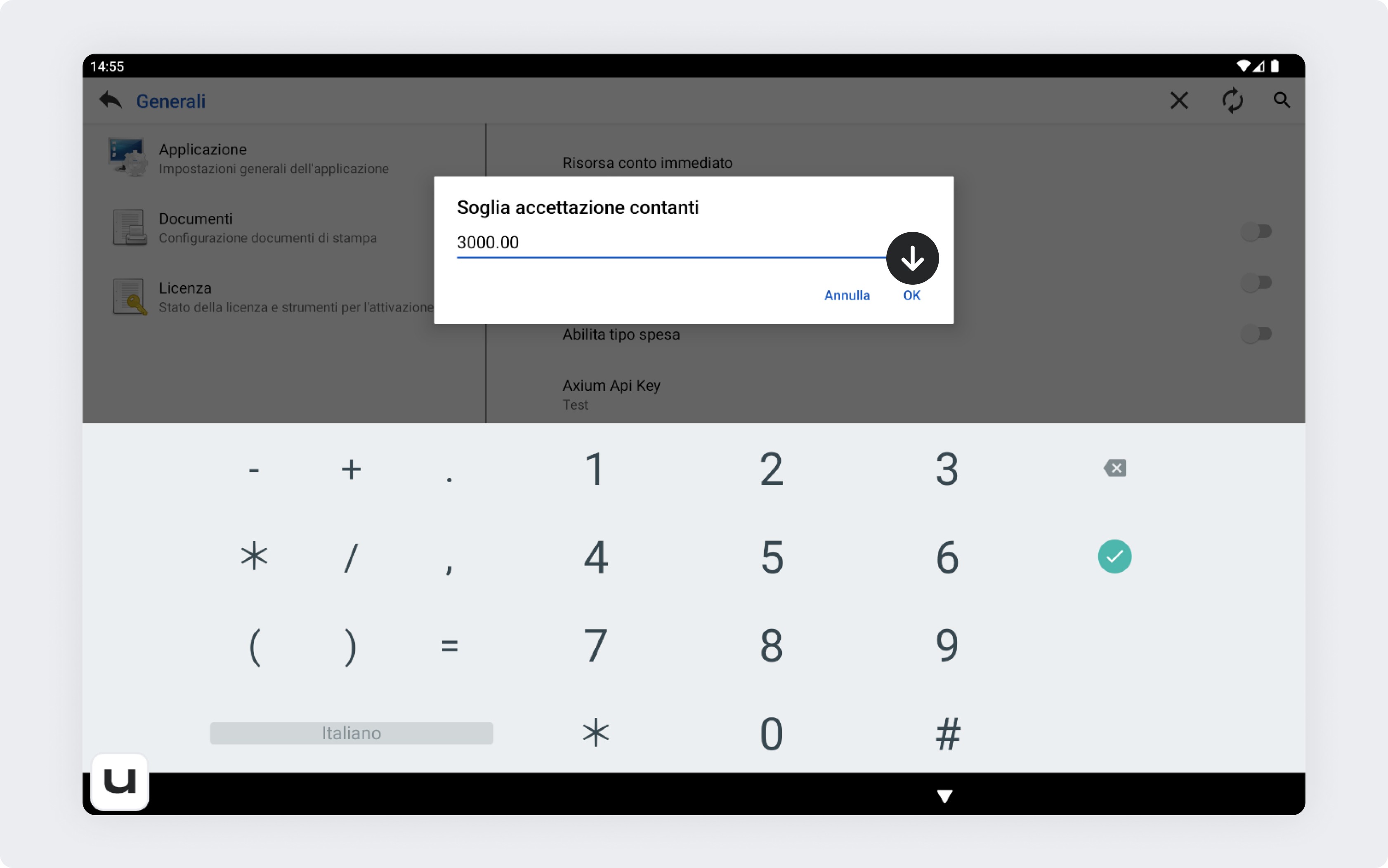 ℹ️ È importante usare il punto per separare i decimali, altrimenti la cassa non riconoscerà correttamente l’importo.