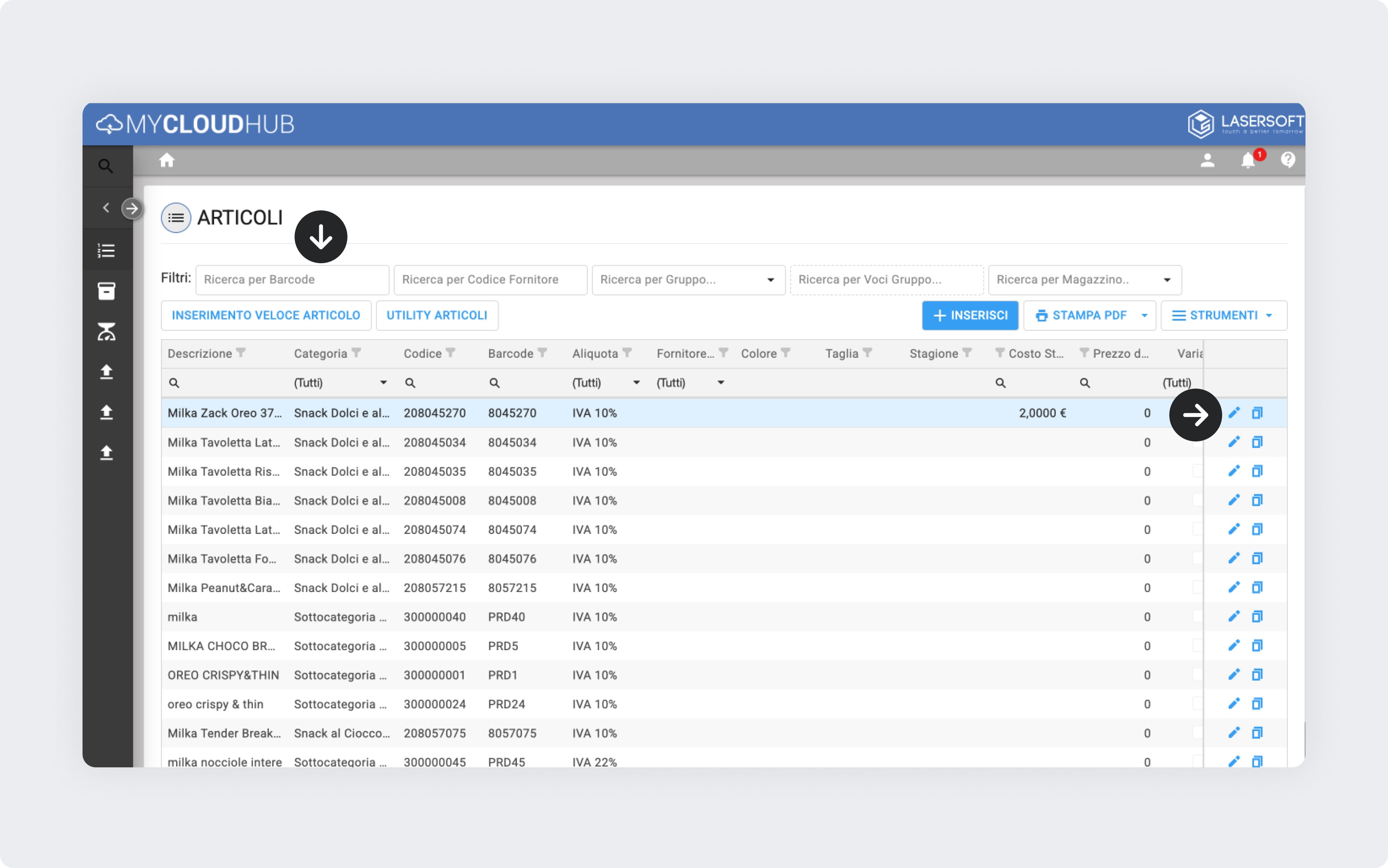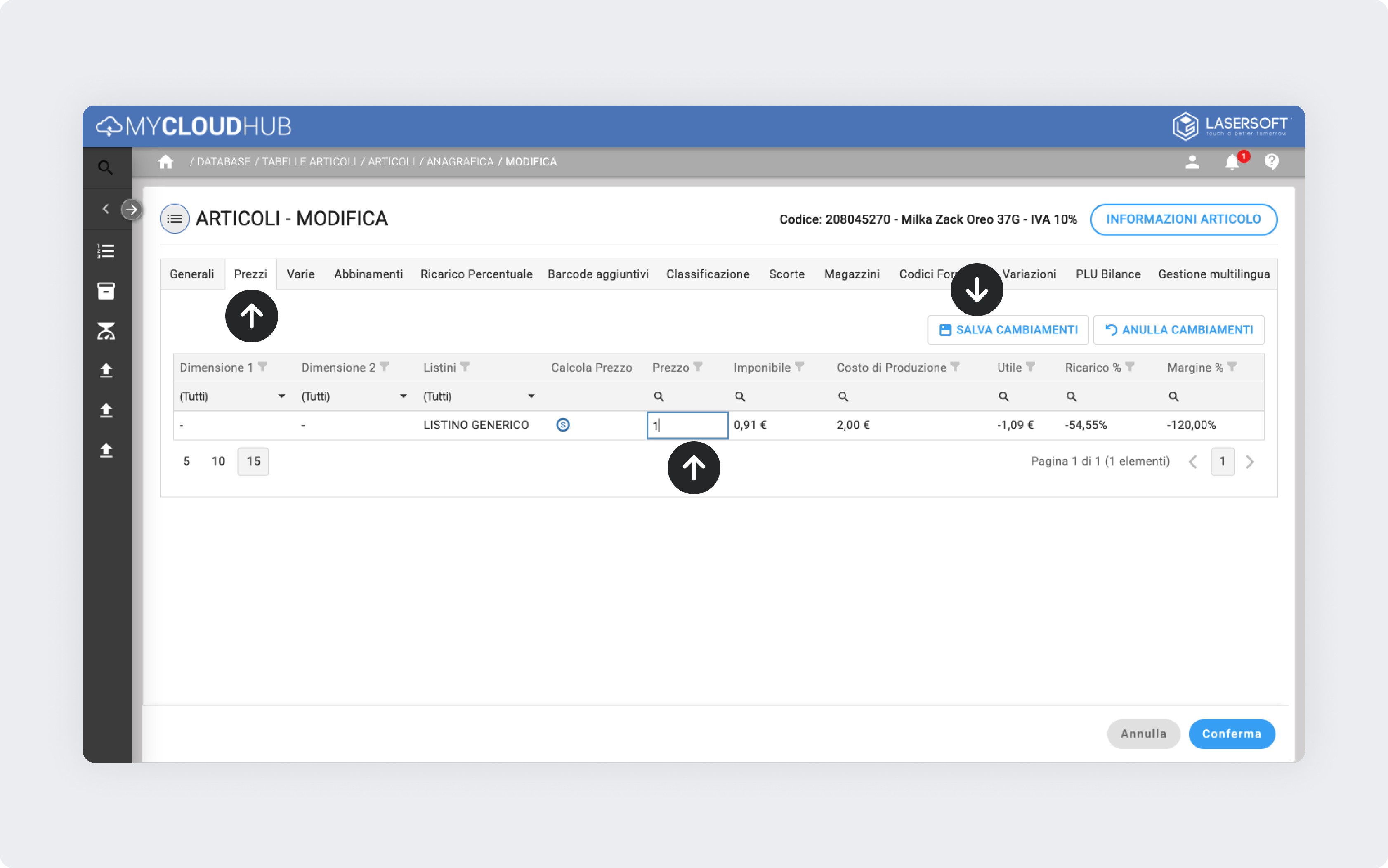 Clicca su Modifica articolo per aprire la schermata Anagrafica articoli.